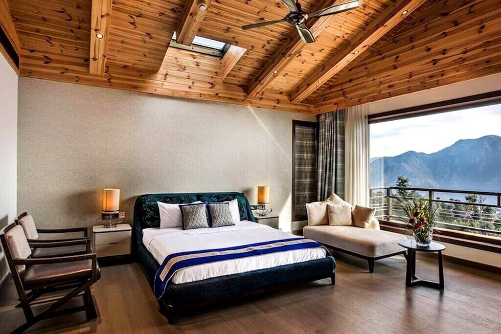 * Features a king-size bed with plush bedding, a private balcony, and panoramic views of the Ganges meandering through the valley.