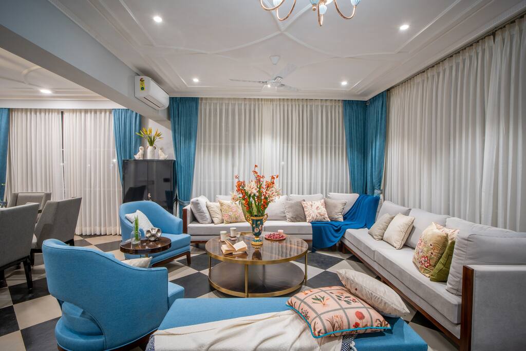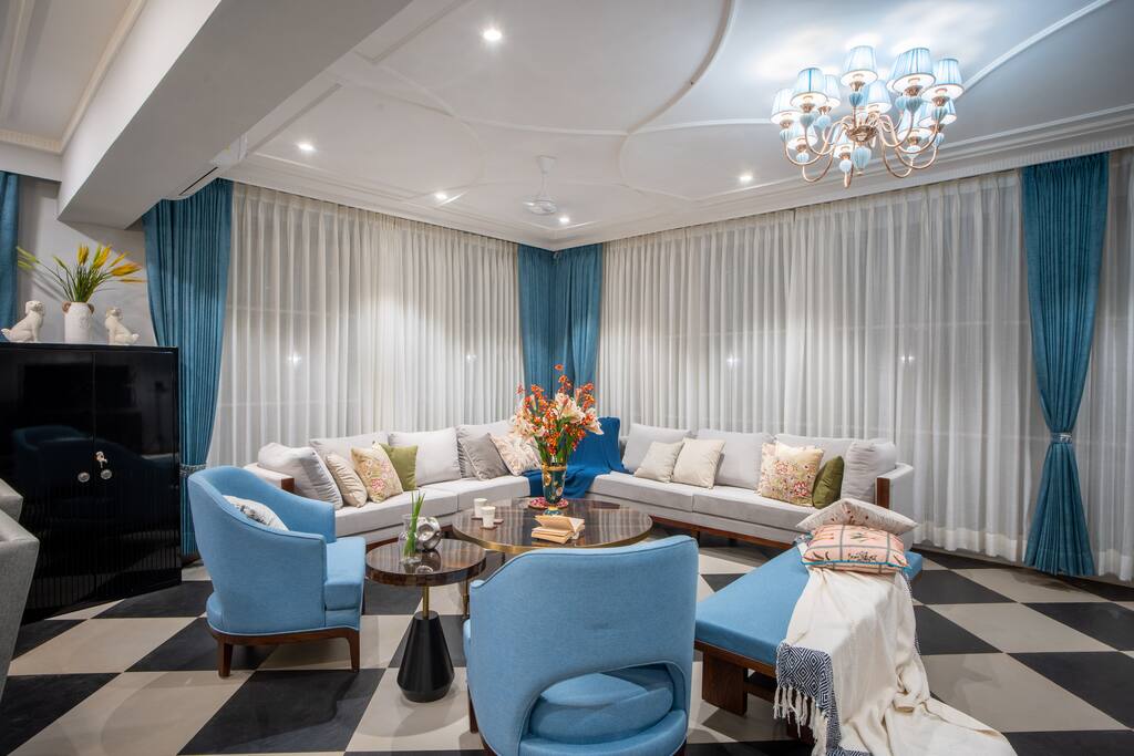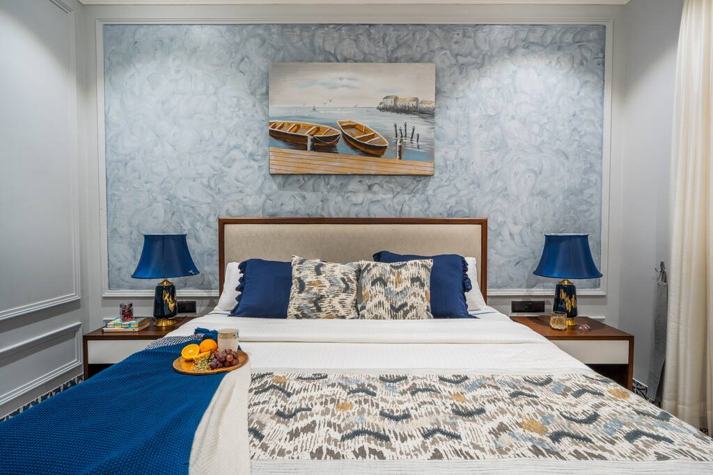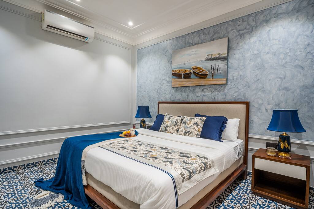 • Bedroom 2: Celestial Chamber (1st Floor) – Elegant blue tones, private balcony, and ensuite.