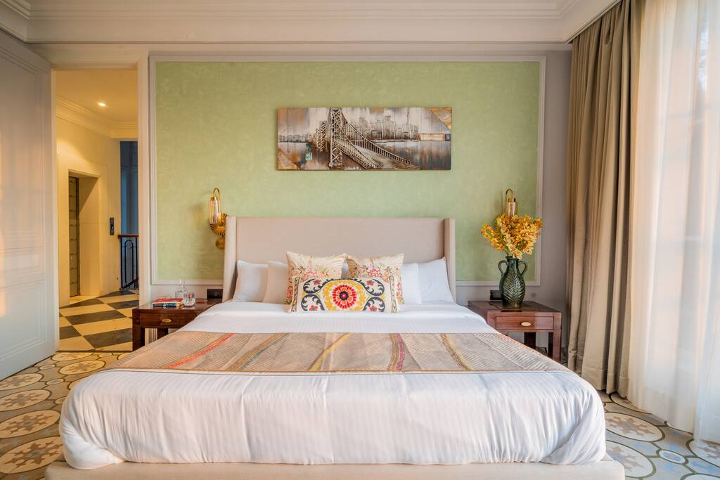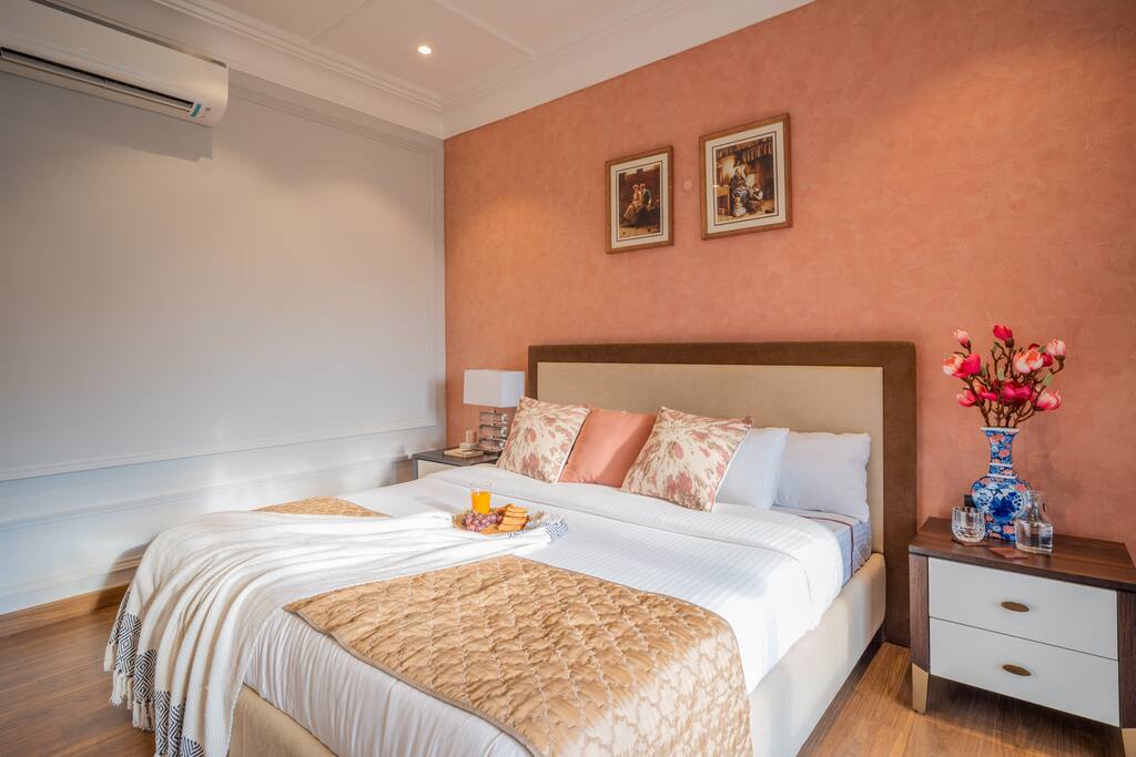 • Bedroom 1: Ivory Oasis (2nd Floor) – Calm, sophisticated palette with balcony, sofa chairs, and ensuite.