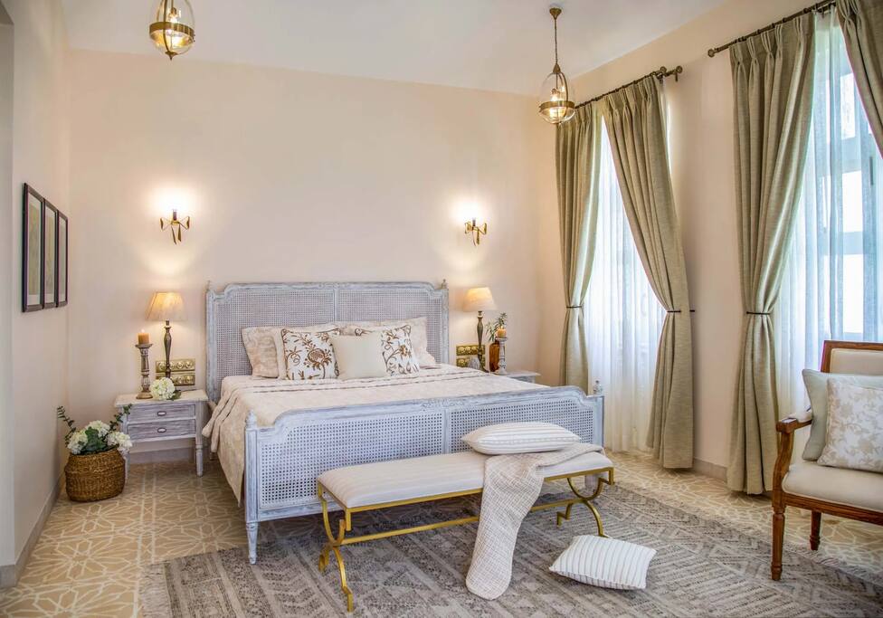 • Mediterranean-inspired architecture with arches and earthy interiors.